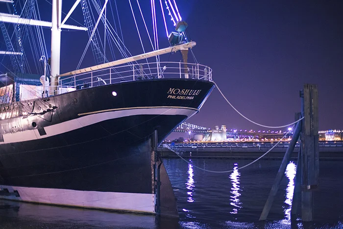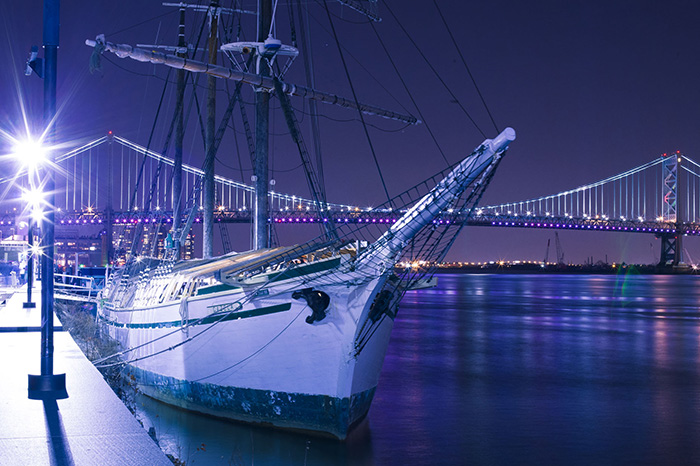 I went into Philadelphia to spend some time with some friends and try to get together with still other friends to ring in the new year while watching the Sugar House Casino-sponsored fireworks show from Philadelphia’s Penn’s Landing. I wandered around in the windy 25 degree weather (it felt like 15 degrees) and shot some photos of some of the festive happenings in Center City and Old City in Philly before dropping by the skating rink at Penn’s Landing and finally wandering over to the Moshulu ship/restaurant/deck/bar and watching the fireworks from the outdoor deck. That’s when something unexpected happened.